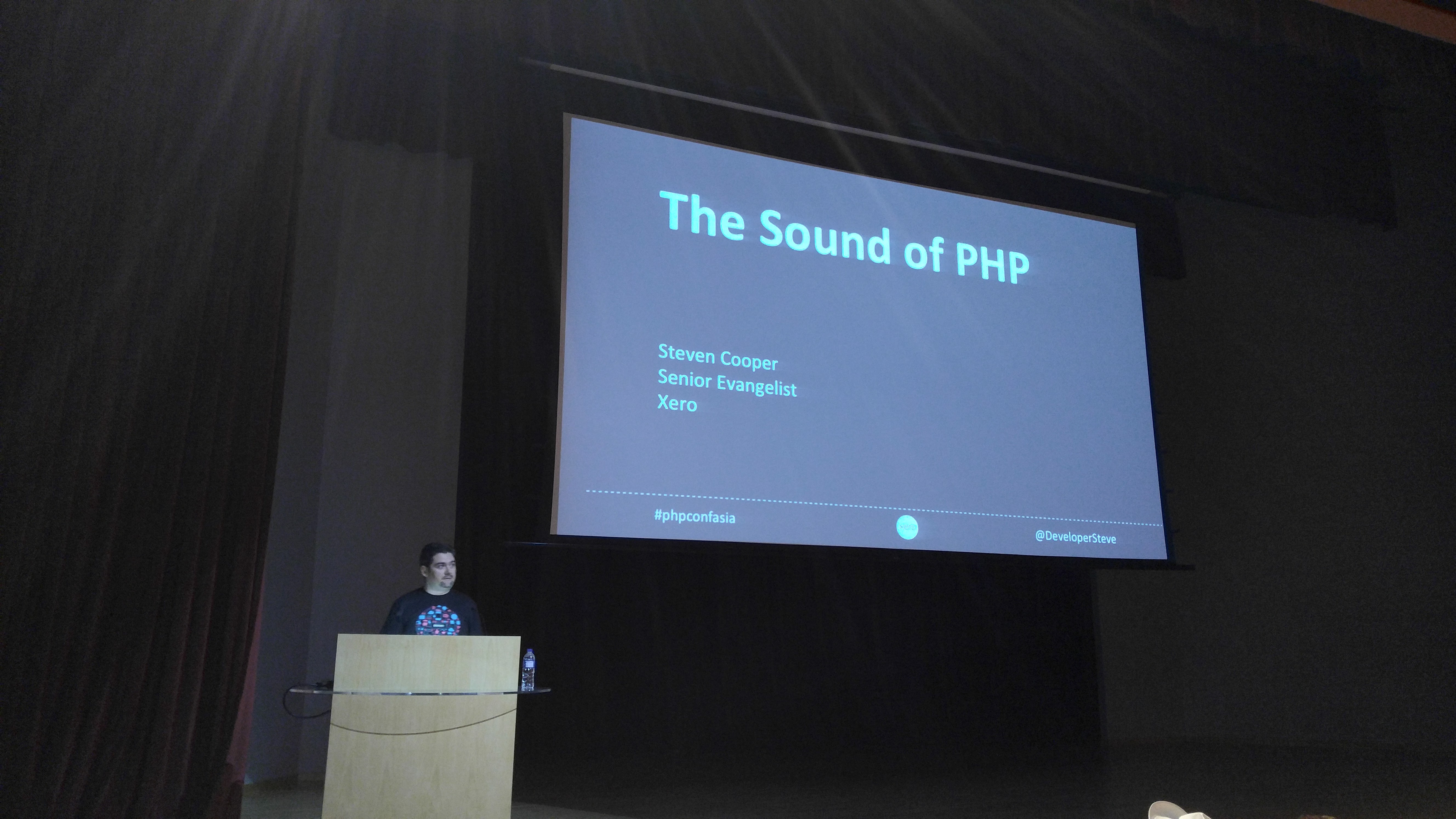 The day continued on with several normal talks that lasts for 45 minutes each and also 3 lightning talks, each lasting for 15 minutes (not very “lightning” but still shorter than the normal ones). I was particularly intrigued by one of the talks given — “The sound of PHP” by Steven Cooper (@DeveloperSteve).