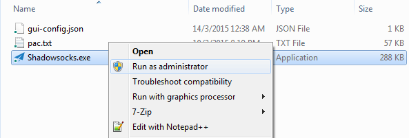 Step 2: Run Shadowsocks client as Administrator